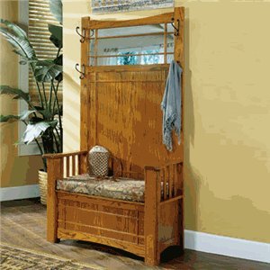 Order Powell Mission Oak Hall Tree with Storage Bench @ Amazon.com