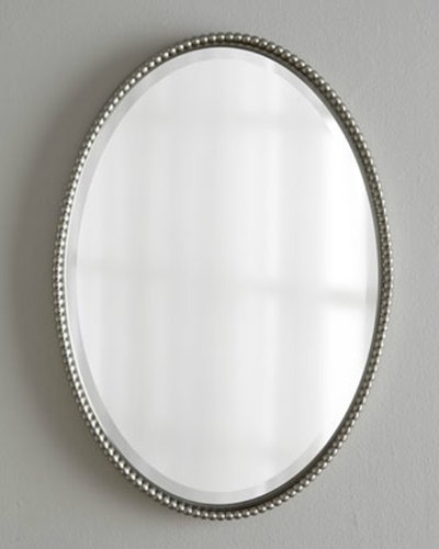 Best Price Brushed Nickel Silver Beaded Edge Metal Frame Beveled Oval Wall Mirror Vanity Hall Bath Decor Today